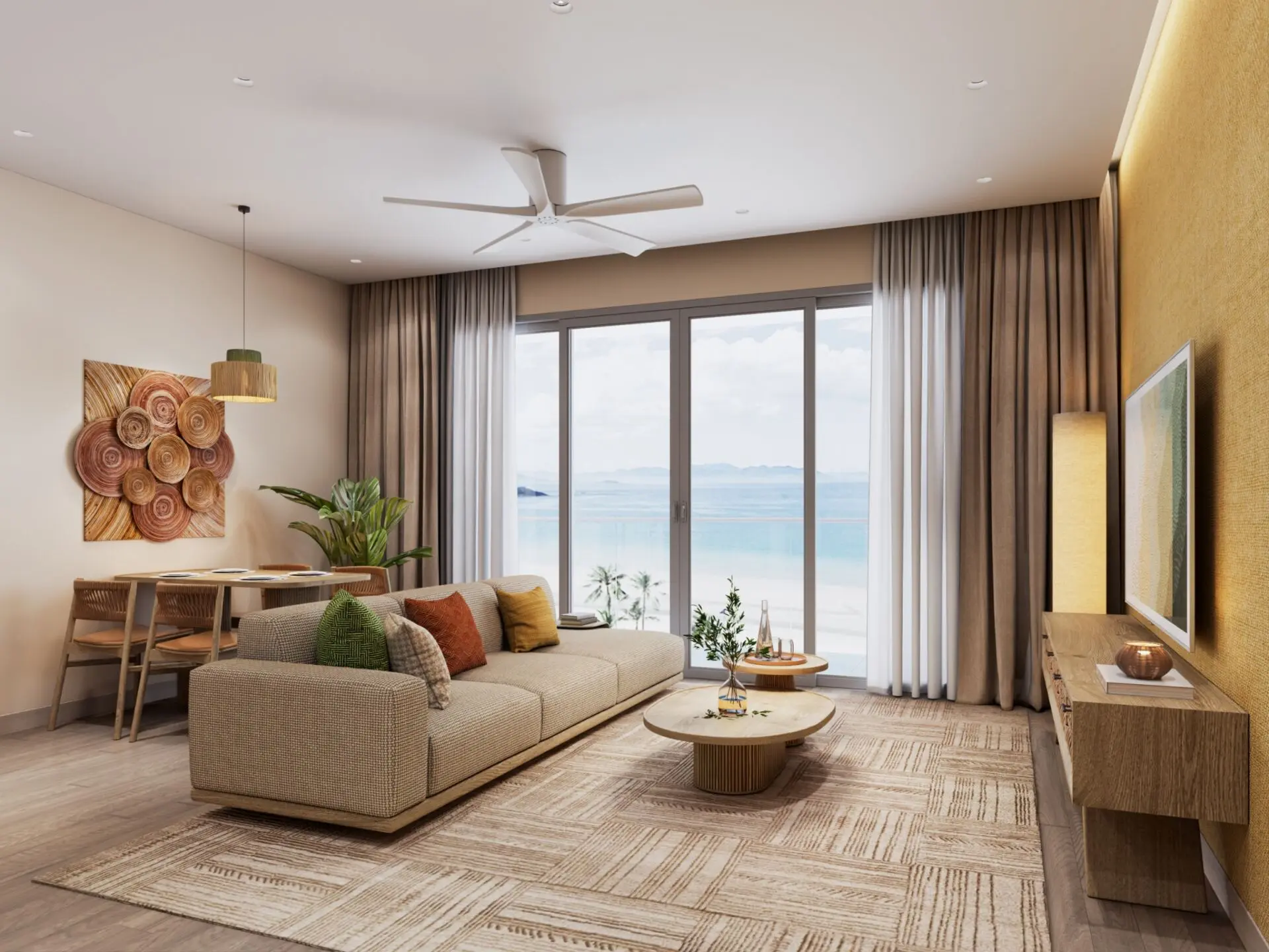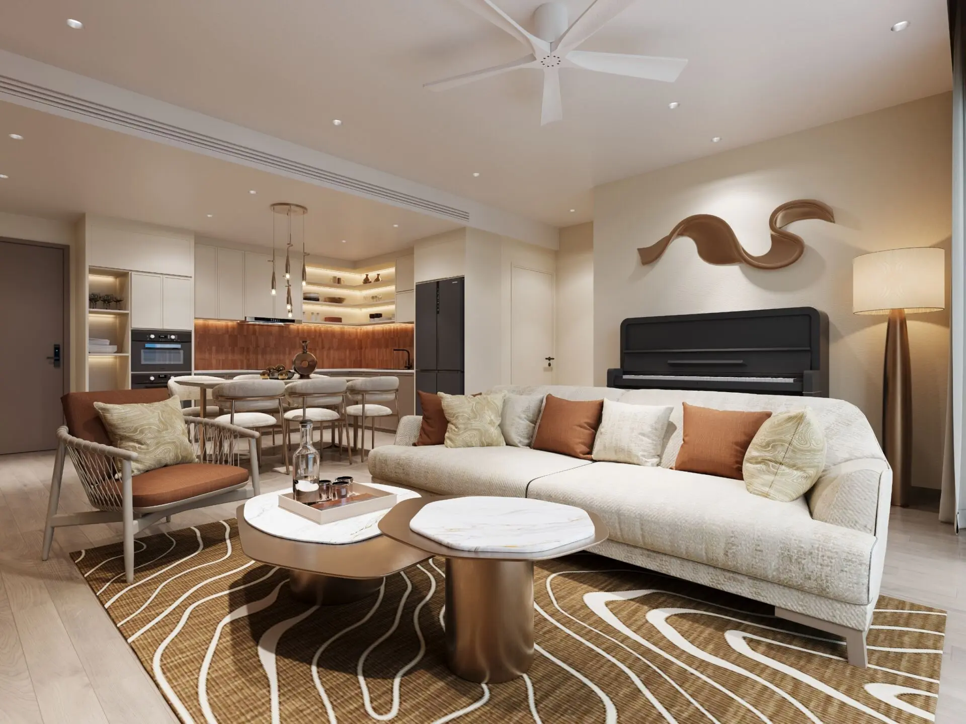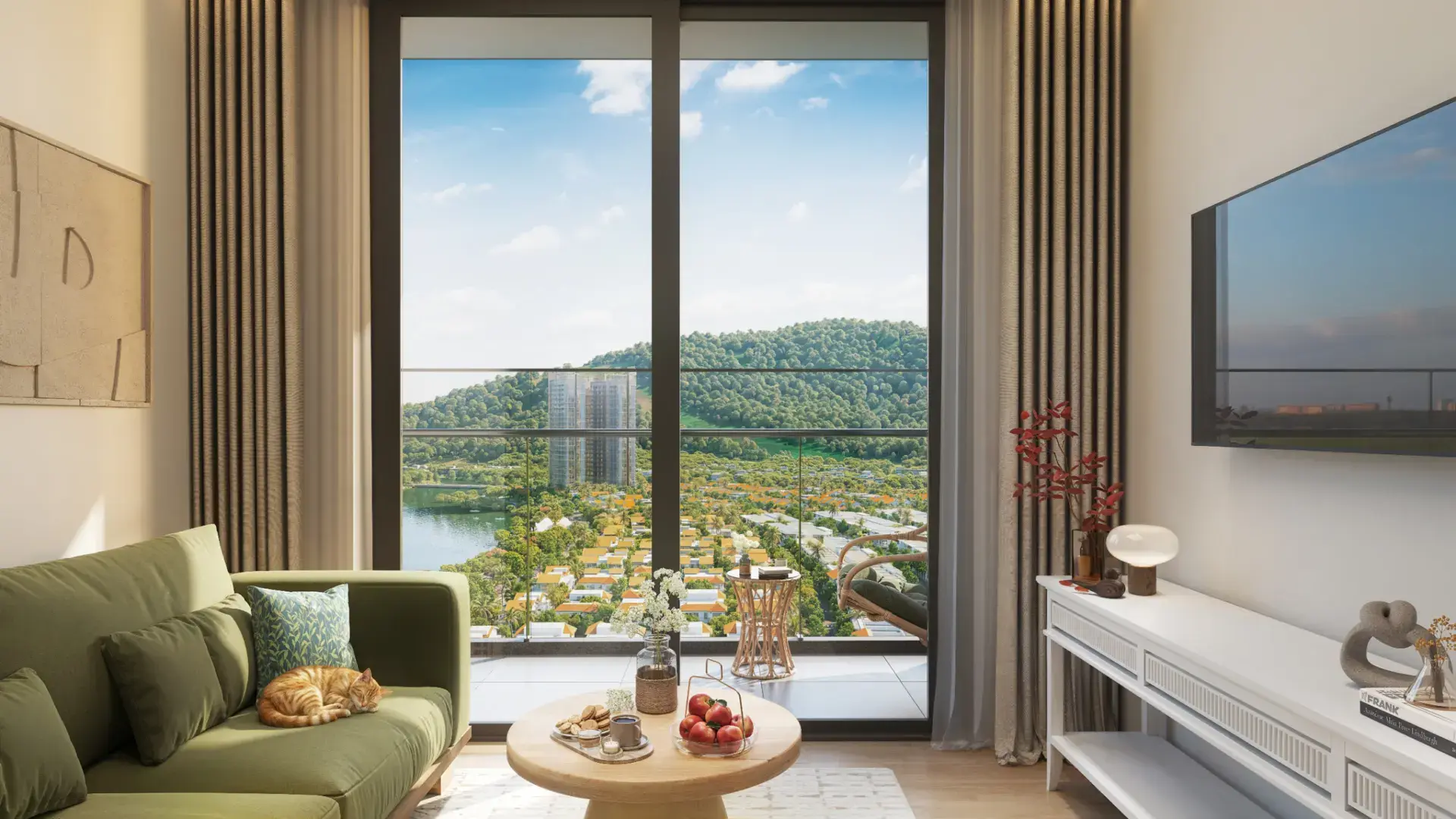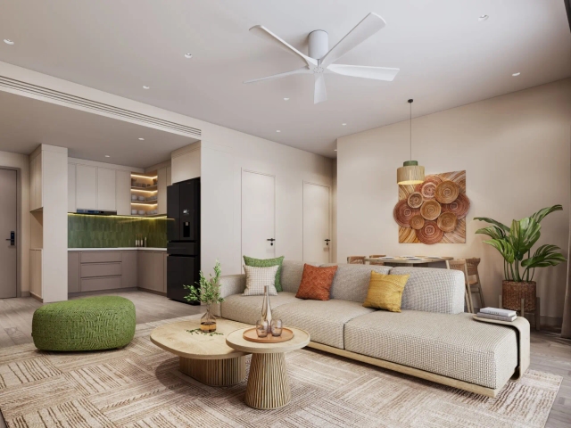Dự án cung cấp 900 căn hộ cao tầng, 340 căn townhouse và 205 căn biệt thự, phân bổ theo ba đảo chức năng.