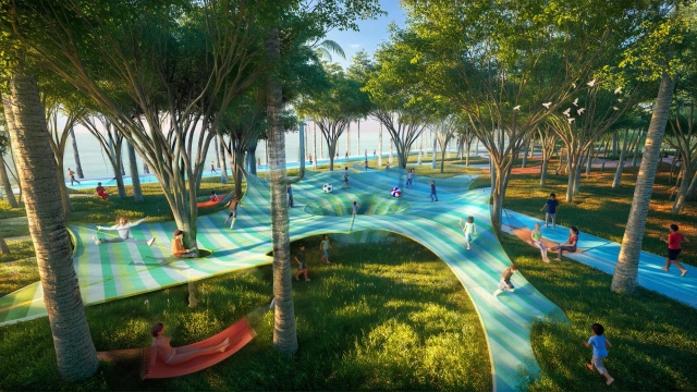 Điểm nhấn là hệ mặt nước lớn, công viên sinh thái và chuỗi tiện ích giải trí - thương mại, hướng tới cộng đồng định cư lâu dài và trung tâm du lịch mới.